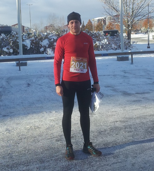 Alkuun juoksu ei tuntunut kovinkaan kevyeltä ja kenkä lipsui miltei jokaisella askeleella, mutta heti kärkimiesten perään koitin silti iskeä lähtöviivalta. Muutaman kilometrin jälkeen alkoi tuntua vähän rennommalta ja sopiva vauhti alkoi löytyä. Päätin olla yrittämättä turhaan ennätyksiä, mutta juosta kuitenkin niin hyvin kuin pystyin. Olosuhteisiin nähden matka taittui ihan mukavasti tasaista 4:28 min/km vauhtia. Maalissa olin siis ajalla 1.35.22 ja kokonaiskilpailun sijoituksella 21. Spekuloitavaksi jäi kuinka paljon liukkaus vaikutti vautiin, mutta olin silti ihan tyytyväinen. Pitänee koittaa ottaa se uusi oma ennätys ensi kesänä.