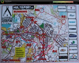 Melonnan jälkeen koitin saada jalat lämpimiksi kävellen ympyrää samalla kun riisuin liivejä ja pistin varusteita kuntoon viimeistä juoksuosuutta varten. Jalkojen hieman lämmettyä, ei ongelmia enää ollut ja muutaman kilometrin loppurypistys kulki hyvin. Harmittavasti emme ymmärtäneet hakea loppusuoran alussa ollutta viimeistä rastia, vaan leimasimme suoraan maalileiman. Tästä tuli 10 min aikasakko ja sijoituksissa meidät tiputettiin kaikkien joukkueiden, joilta ei rasteja puuttunut, alapuolelle. Olimme siis 8. maalissa ja viimeinen joukkue, joka ehti 6h aikarajan puitteessa maaliin, mutta silti maalisuoran alun leiman puuttuminen tiputti meidät sijalle 10.
